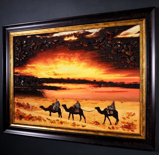 100% Amber painting "Caravan in the desert"| Canvas Painting Camel in desert|Amber Wall Art|Handmade Amber Wall Decor|Custom Amber Portrait